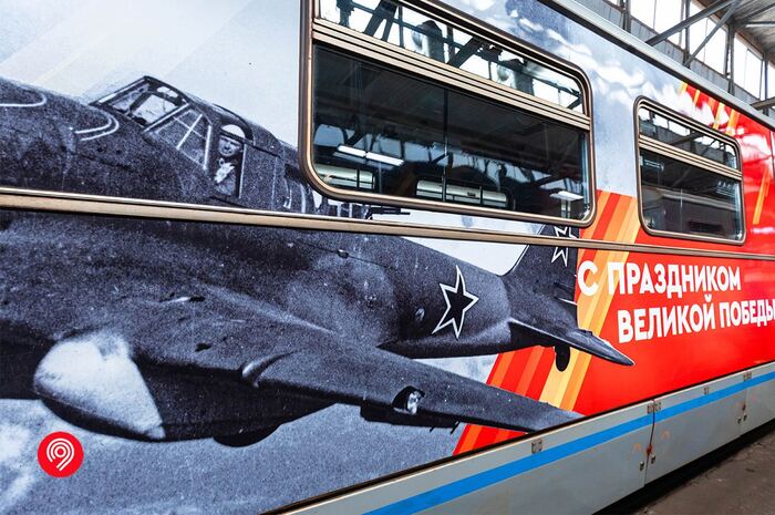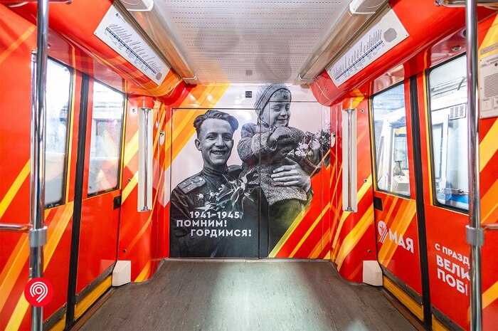 В метро в честь 9 мая разместили 150 праздничных плакатов, а также 200 стикеров в вагонах поездов. Также с сегодняшнего дня по Арбатско-Покровской линии курсирует тематический поезд, оформленный в едином стиле празднования Дня Победы. Состав можно встретить вплоть до 23 июня.