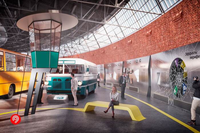 🔹 Экспозицию на первом уровне посвятим истории развития наземного транспорта и сервисных городских машин.