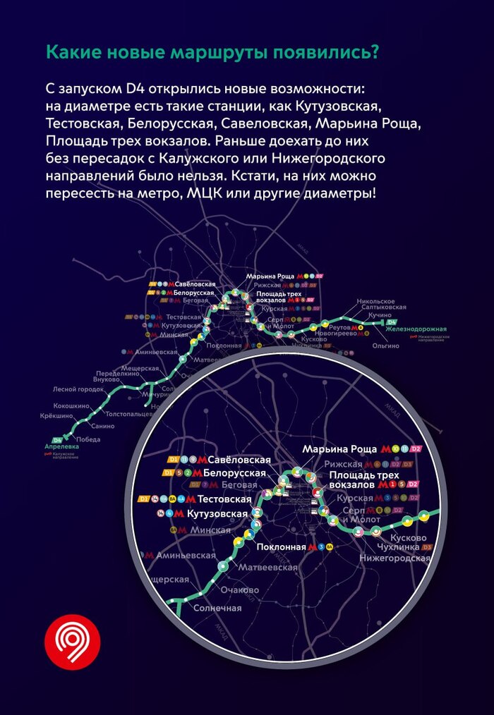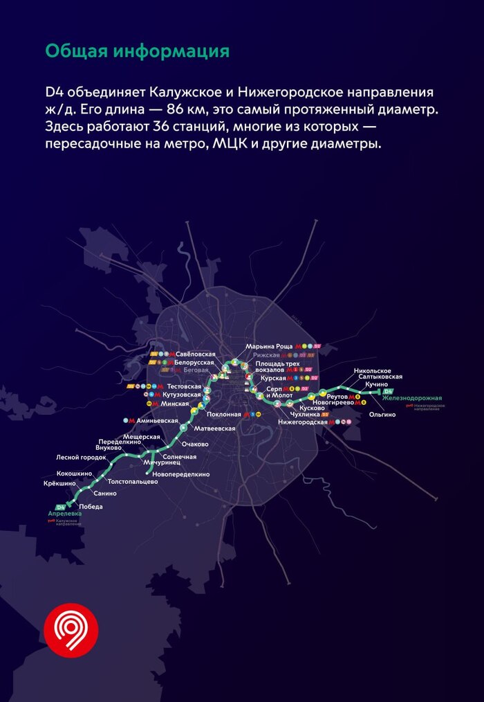 🔹 D4 связал более 20 районов Москвы и 4 города Подмосковья.