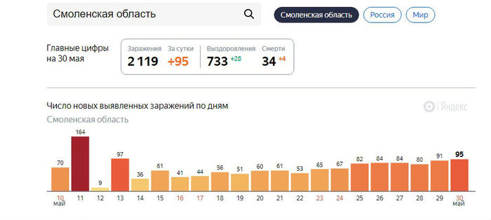 2) И тут вторая незадача. Островский и его окружение начисто провалили борьбу с инфекцией. Вспыхнули за 2 месяца 4 дома престарелых (Вязьма, Вишенки, Голынки, Ярцево), более 50 сотрудников АЭС в Десногорске, 2 психушки - (Гедеоновка, Починок.) Людей уже начинают отправлять в Москву (т.к места заканчиваются в больницах).