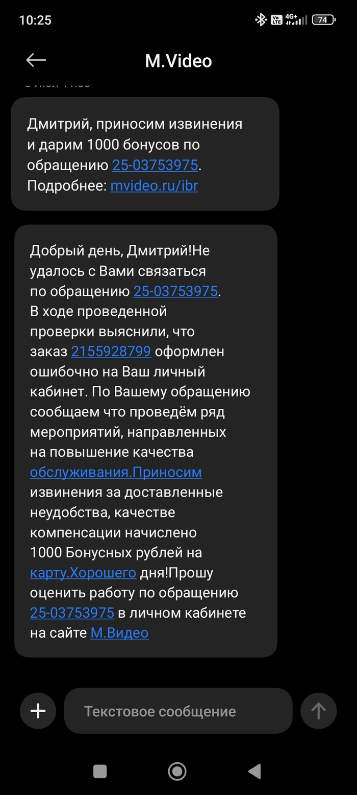 По итогу прошло дней пять или шесть молчания. И наконец мне прислали чудо смс .