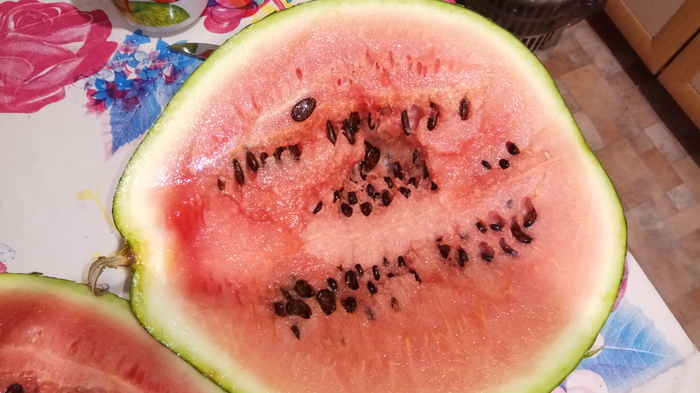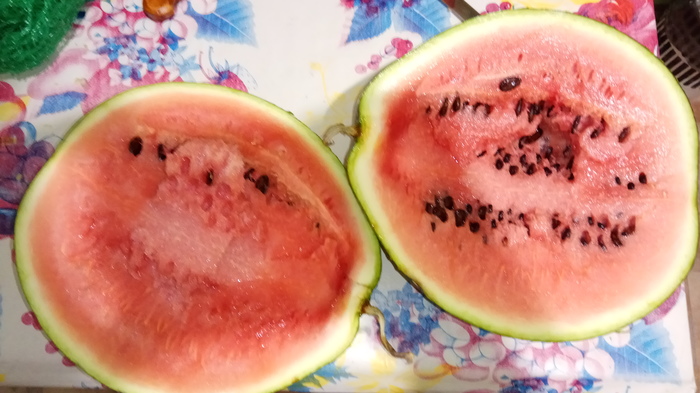 Примерно в октябре было закуплено 3 небольших арбуза, и они были повешены в сетке. До Нового года дожило только два. В итоге у одного мякоть была мягкой (как губка) и сладкой, а у второго - твердой (как у свежего арбуза) и сладковатой.
