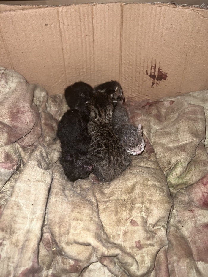 К обеду четверо прелестных малышей лежали в коробке с любимой маминой подушкой.