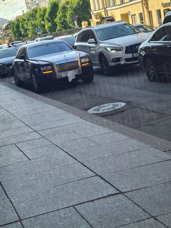 «На Rolls-Royce, водитель которого решил прикрыться от оплаты и от штрафа, вечером 30 мая обратил внимание читатель «Фонтанки» Павел. На присланных в редакцию фотографиях видно, что машина припаркована возле одного из заведений на улице Белинского.»