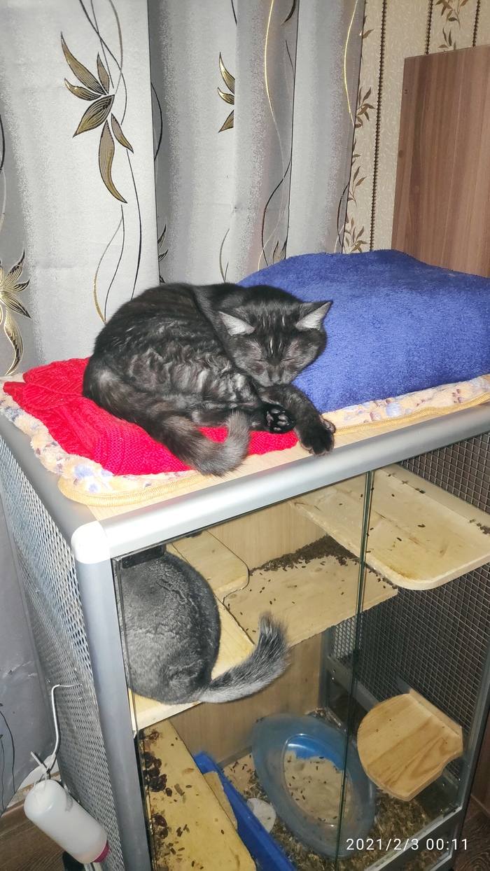 Общительный, но тихий, в набеги не ходит. Ночами предпочитает спать, лоток и когтеточку знает.