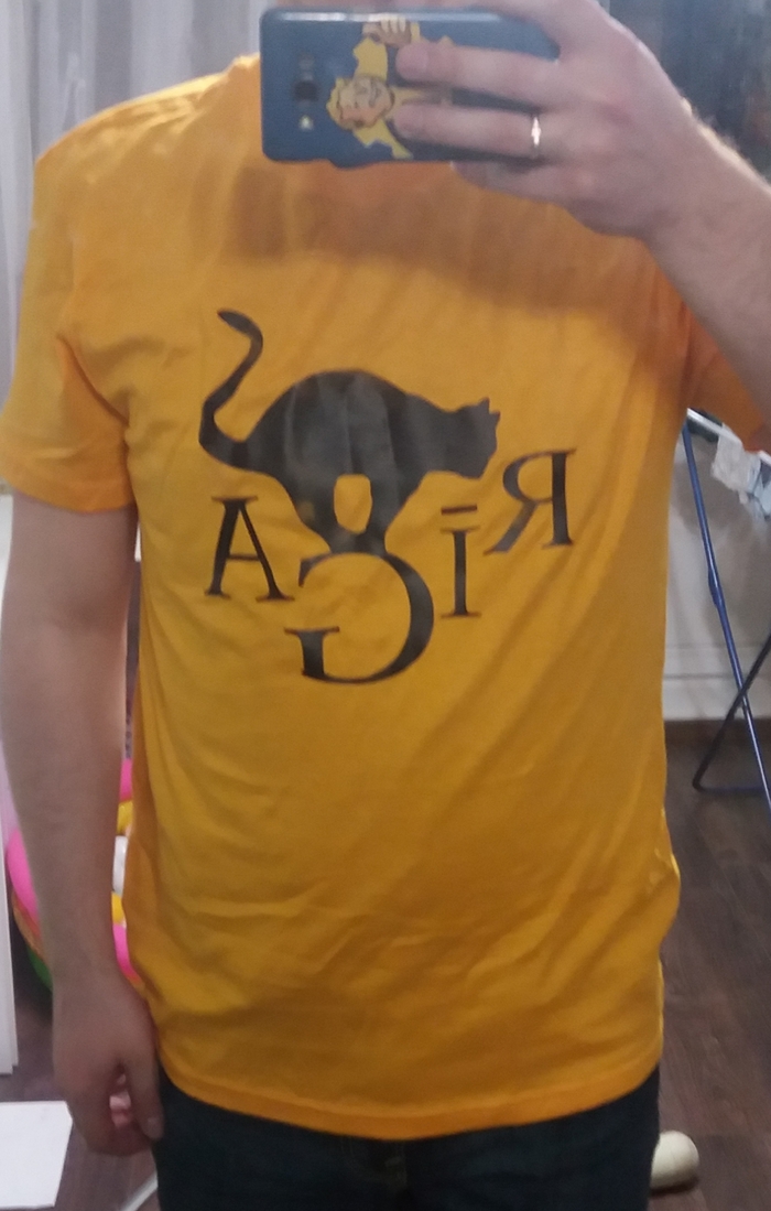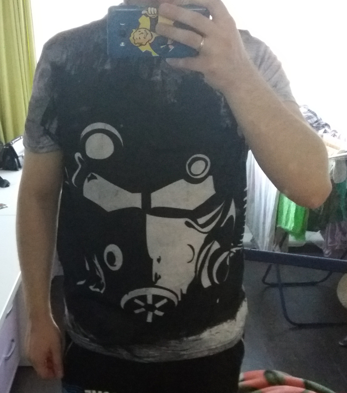 И самое главное, так как это был обмен футболками! Крутая футболка со шлемом от силовой брони из моей любимой игры Fallout!!! Четко по размеру))