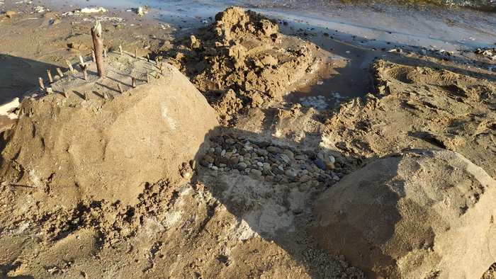 В общем, мы принялись копать. И знаете, это круто! Я, почти сорокалетний, бородатый мужик, с азартом и интересом возился в песке с совочком, самосвалом и экскаватором! Мы так увлеклись, что забыли даже искупаться.