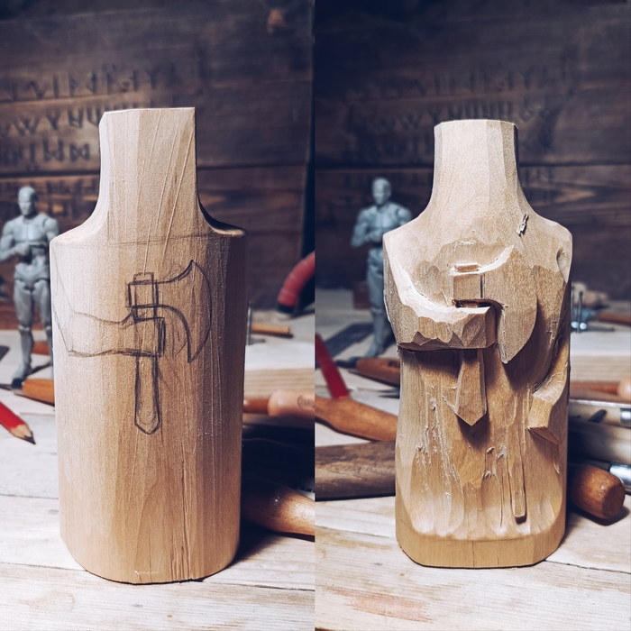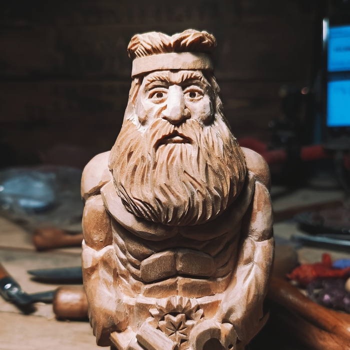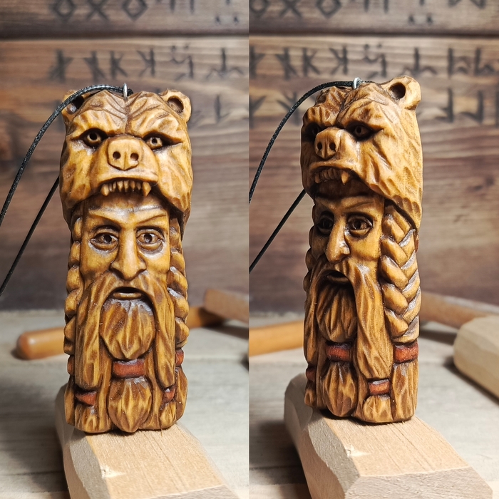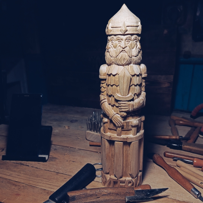 Материал берёза, морилка, льняное масло, воск, акриловые краски. Высота 15см.
