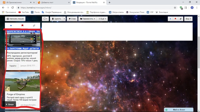 А месяца три назад произошло нечто: Adguard вместе с AdblockPlus справлялись со всей нечистью. Однако они перестали блокировать рекламу на сайтах платформы Mail.Сру. В частности, это почта и Одноглазники. Вы могли бы посоветовать заменить их GMail и Вконтакте, но нет. В ОК я общаюсь со своими знакомыми, которые не освоили ВК, а почтой пользуюсь, потому что с научным руководителем обмениваемся файлами.