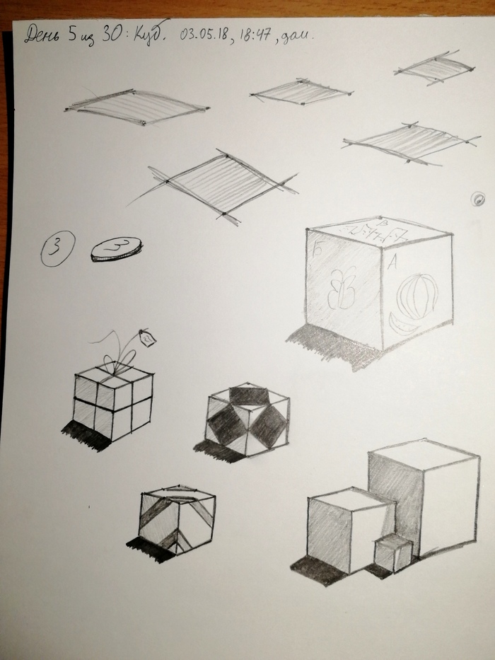 Сегодня смог порисовать совсем чуть-чуть. Следить за направлением тени оказалось труднее, чем кажется, но в целом стало немного лучше. Дополнительное задание нарисовать не успел, сделаю на выходных.