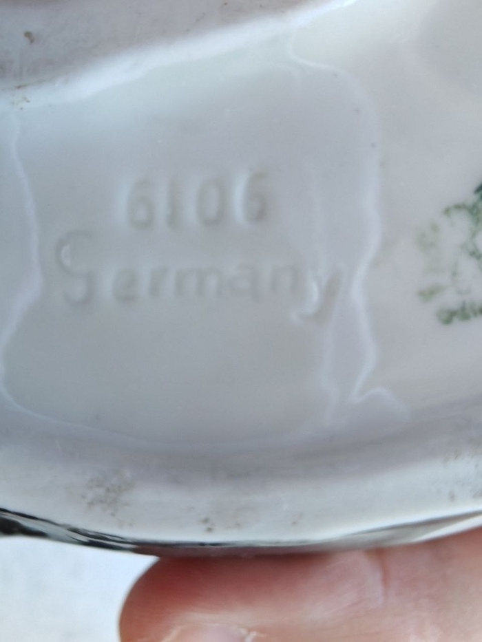 На клейме в верхней части чётко просматривается сердце пронзённое стрелой, ниже вроде какое-то животное жена считает, что это кошка, мне кажется бобёр, но это не точно. Оттиск 6106 Germany.