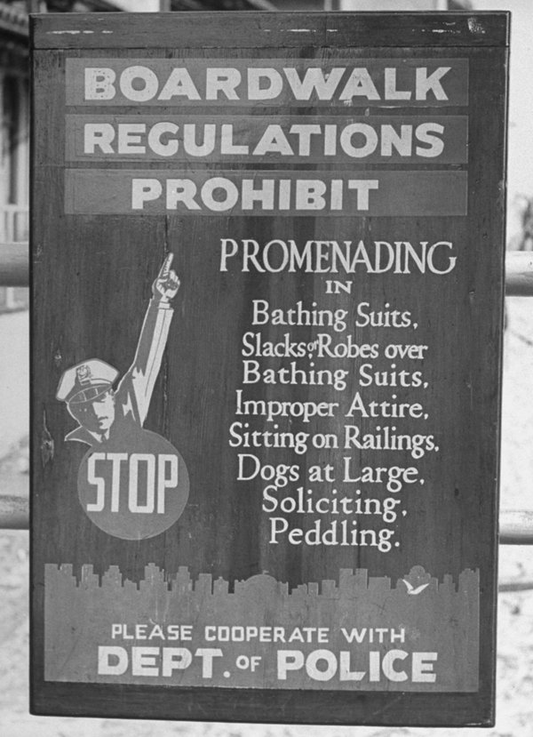 Впрочем, как явствует из фото Альфреда Айзенштадта, сделанного в 1941 году,, наказание за «неподобающее поведение» на пляже кое-где сохранялось спустя годы.