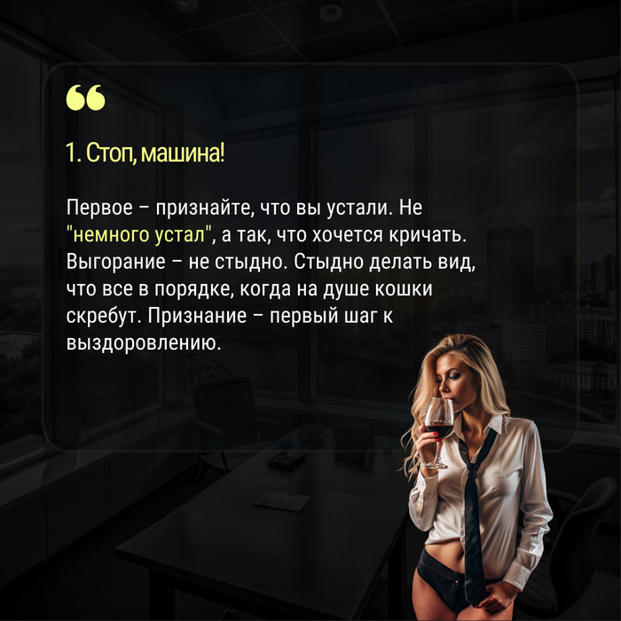Первый шаг к восстановлению – признание того, что выгорание действительно произошло. Не стоит игнорировать сигналы тела и разума. Признание проблемы – это не признак слабости, а первый шаг к её решению.