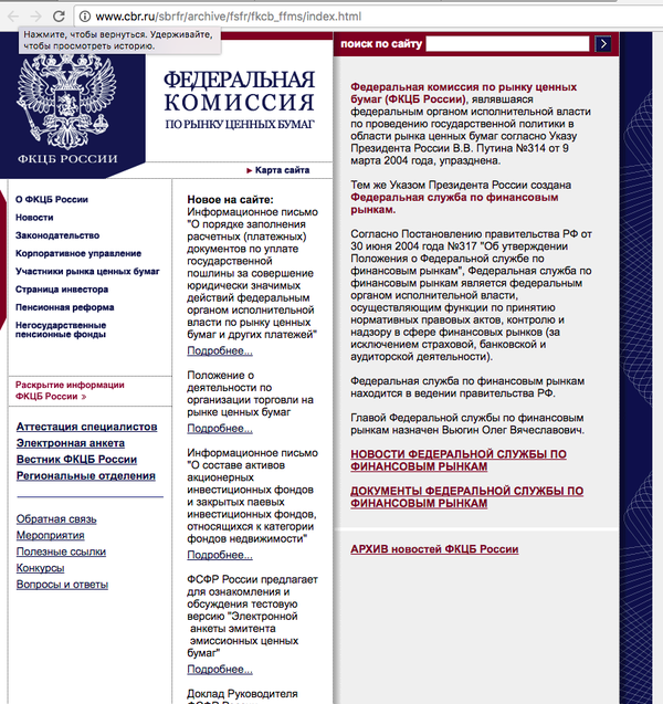 Итак, это Федеральная комиссия по рынку ценных бумаг. Обращаю внимание на домен. Он ведет на Центральный Банк России. Организация понадежней.