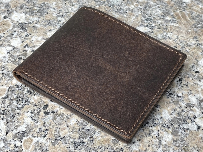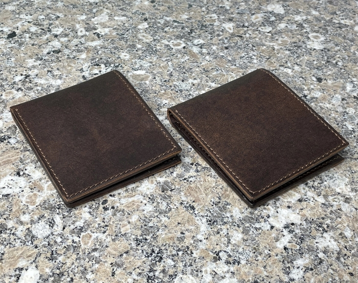 После выпуска превью гайда от Peter Nitz по технике leather marquetry я решил однозначно что надо что-то реализовать. В целом я уже месяцев 4-6 хотел попробовать использовать данную технику в жизни и даже спроектировал пару обложек для паспорта с довольно сложными рисунками. Оставлял их на потом так как хотел реализовать данные проекты из кожи козы от Alran. На передней панели 3 кармана, 2 верхних кармана подвернуто, нижний 2 слоя по 0.5 и покрашен. На заднюю панель изначально хотел добавить простые геометрические фигуры, далее я захотел как-то обыграть 3д эффект на плоскости и в итоге пришел к классическому паттерну куба. Для реализации данной идеи я вырезал кусок кожи, на котором я буду собирать элементы мозаики. Рамку я вырезал с помощью паттерна из плотной бумаги, приклеенной к коже для того, чтоб не растянуть полосу и приклеил к основе. Нарезал деталей для сборки мозаики и начал вклеивать по изначально задуманному паттерну и отбивать детали молоточком. Краска Stahl, шаг 3.85, урез 2.5мм, нить Meisi m40.