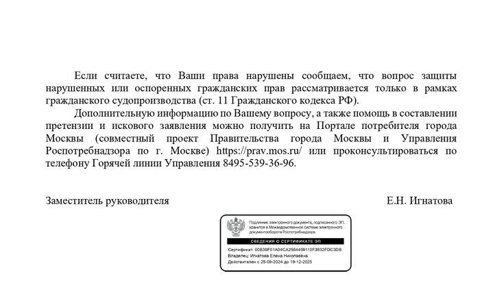 Роспотребнадзор, в ответ на обращение ID 3055960 от 28.07.25 отвечает: