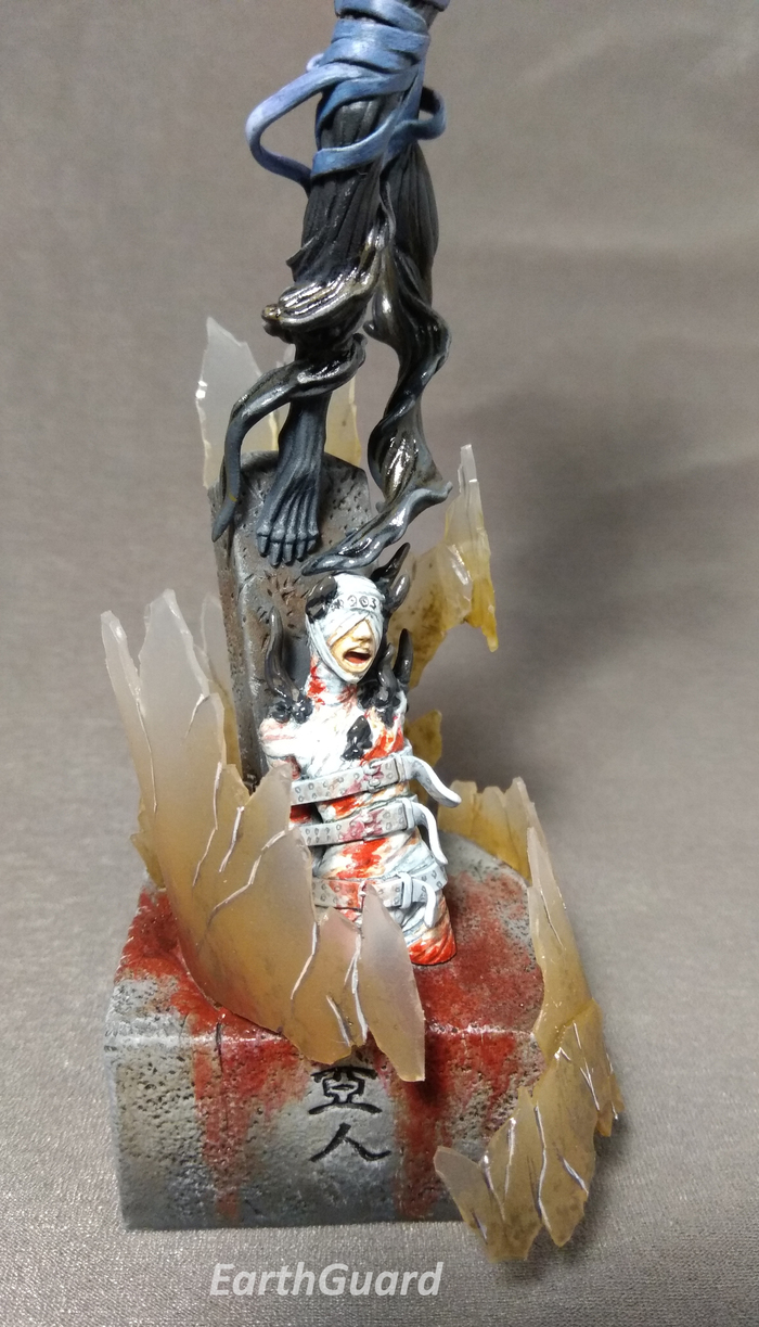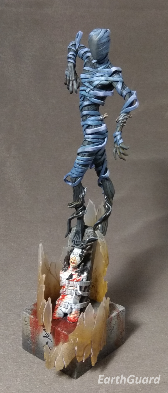 До грунтовки сделал более толстые шипы в ногах. Ровнял тело после грунтовки и еще грунтовал. Потом еще правил лицо. В этот раз опробовал вонючий грунт Mr. Primer Surfacer 1000. Очень крепкий, шлифуется хорошо, но иногда оставляет налипшую пыль. Видать, слабо разбавил и он еле выплевывался через аэрограф. Тем более жара, быстрее сохнет в полете.