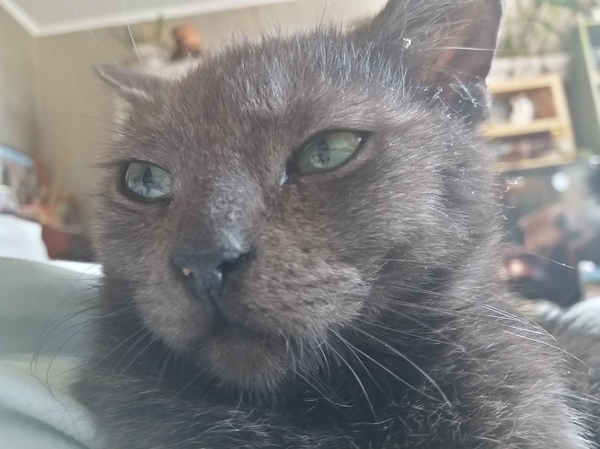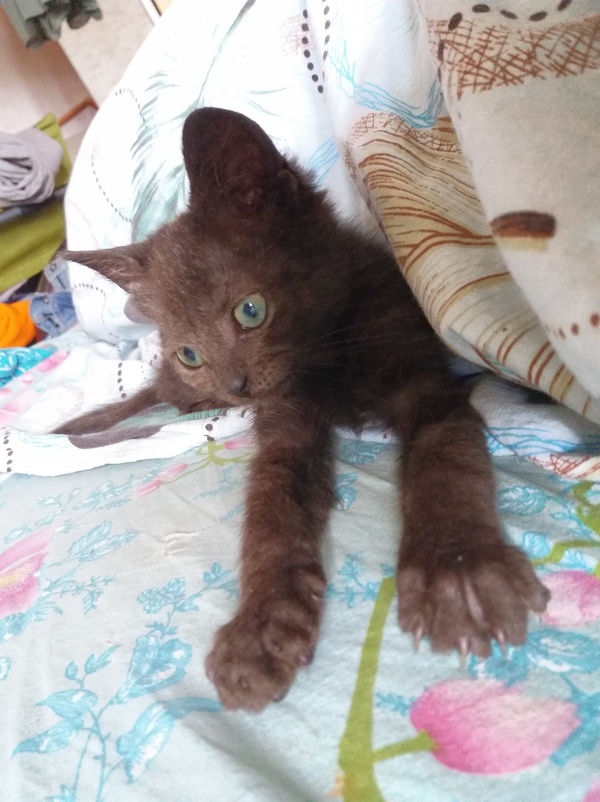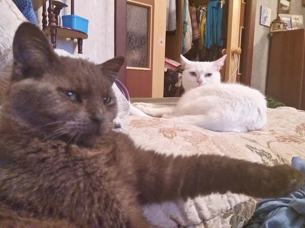 Кот немного меньше старшей по званию (и в два раза тяжелее), недавно он потерял свой последний молочный зуб. Очень ласковый, крайне неуклюжий, самый лучший кот в мире