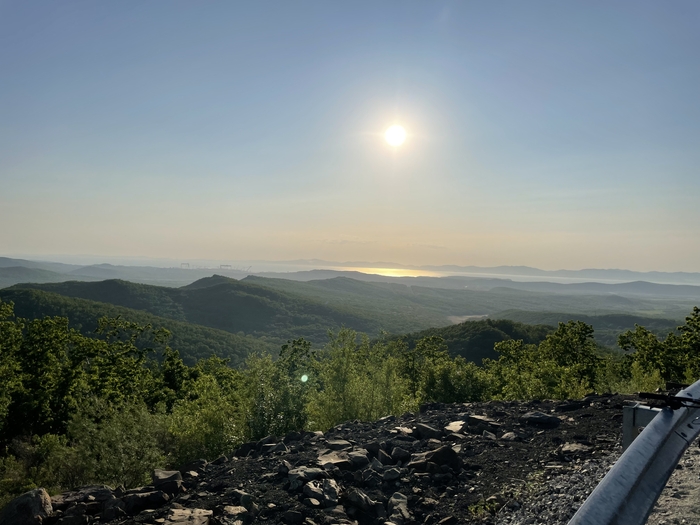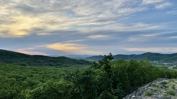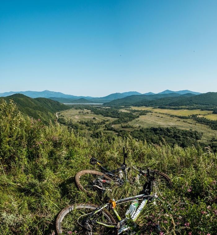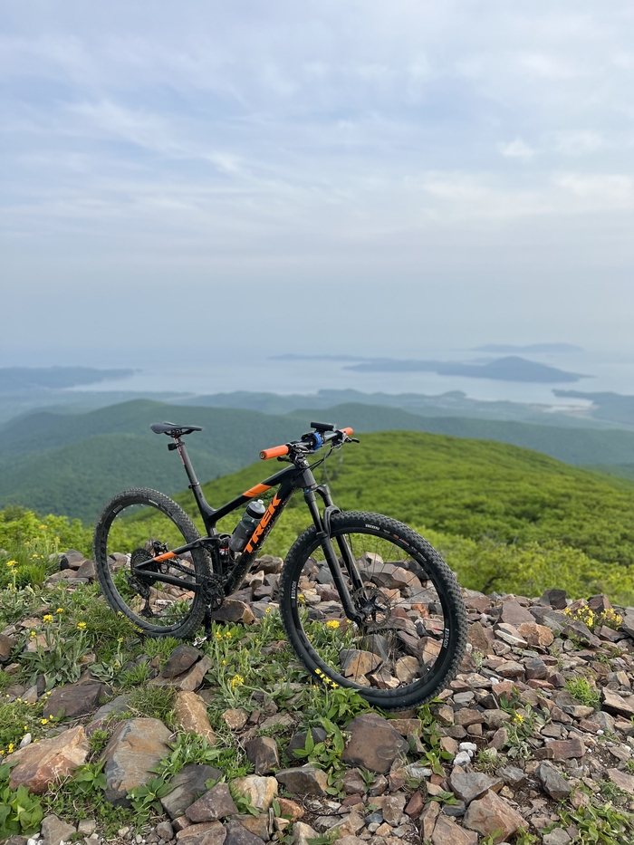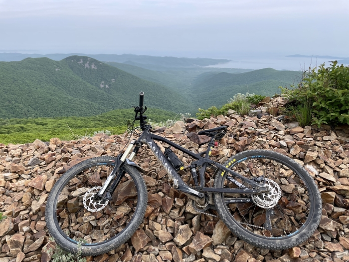Смеркалось. Решили проехаться еще на один подъём и вертать обратно, ибо уже было к темноте, а места тут дикие, встретить тигра или какого другого опасного животного, в этих местах вполне себе высокая вероятность. Доехали. И открылся офигенный вид на будущий наш маршрут. Дома уже глянул по спутниковым снимкам. Маршрут этот примерно в сто километров выходит, как раз выходит круг от дома до дома. Решили его полностью катнуть в какой-нить из выходных и большим составом. Чтобы была возможность раскидать и ремки и еду по людям. А то езда через лесные дороги, то еще приключение)