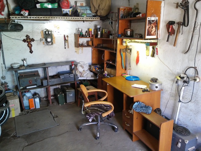И так. Как я говорил в предыдущем посте, мой гараж обнесли. Утащили, суки, всю туристическую снарягу, благо велы не тронули, часть ручного инструмента, причем такого, который продаётся в любом магазине, и немного велоинструмента, благо, на тот момент, я его еще не много закупил. Если честно, помимо тур снаряги, больше всего было жалко алюминиевый поршень, который я использовал для работы с колёсами, уж очень удобная была из него подставка под колесо. Такой я больше не достану. (фото 1, фото с колесом не было, но поршень видно, справа)