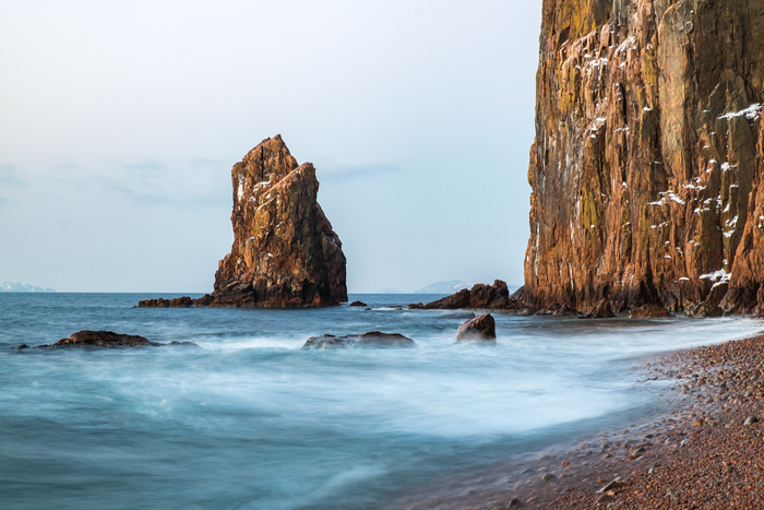 Приморский Край, остров Шкота. Зима, вроде 2018 год. Небольшой островок, являющийся частью острова Русский. Попасть на него можно по косе во время отлива. Но, один хрен по колена в воде, зимой, те ещё ощущения. Когда посреди ночи, с камерой, штативом и прочей ерундой, по камням, которые впиваются в ноги пердолишь на этот островок, чтобы встретить рассвет.