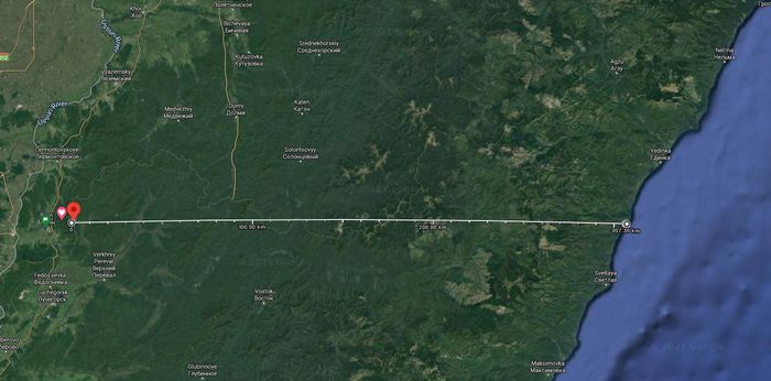 А там за горами, всего в 307 километрах, волны японского моря разбиваются о скалистые утесы Сихотэ-Алиня. (от Хабаровска до Бикина всего 205 км)