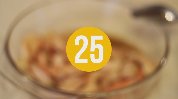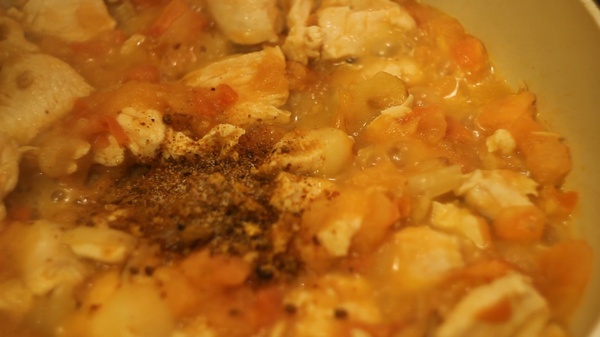 7. Перемешиваем и оставляем томиться на пять. В течении этого времени, перед тем как добавить другие ингредиенты, добавляем соль и специи по вкусу.