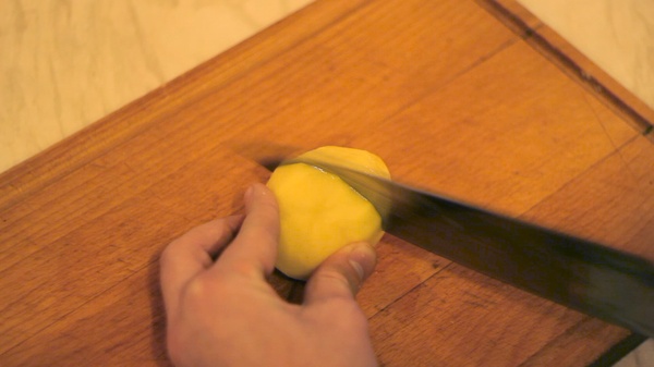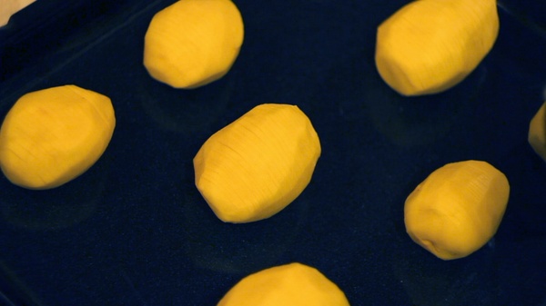 1. Надрезаем картофель не до конца. Старайтесь делать расстояние между разрезами как можно меньше.