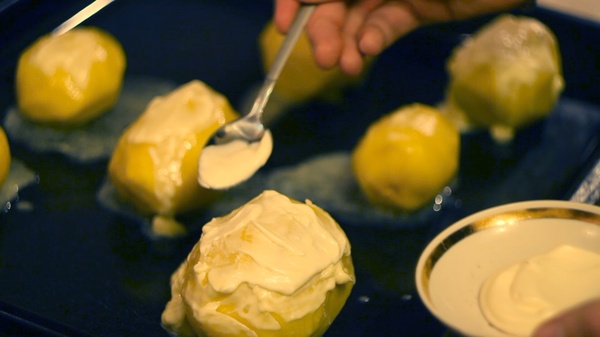 6. Разогреваем духовку до 200°C и ставим противень с картошкой на 50 минут.
