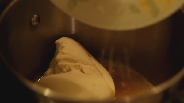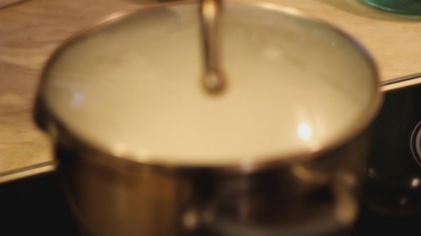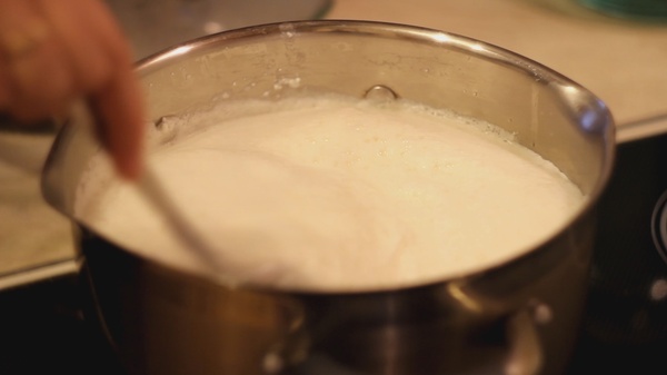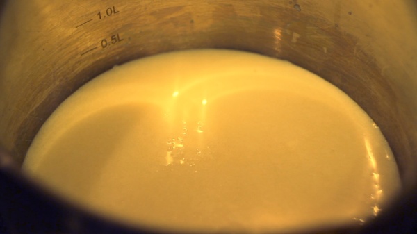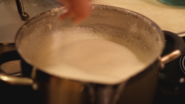 3. Настала очередь перелить в кастрюлю. Накрываем крышкой и ждём пока вскипит. Через некоторое время наша пена поднялась и начала кипеть.