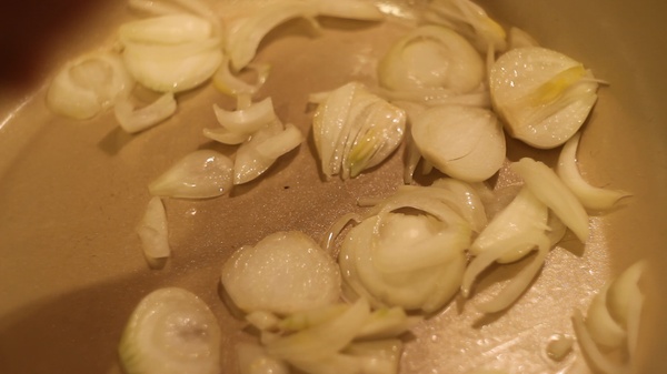 5. На разогретую сковороду выкладываем лук и обжариваем до золотистой корочки.