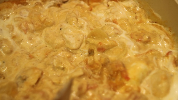 9. Выкладываем креветки на сковороду и обжариваем по одной минуте с каждой стороны.