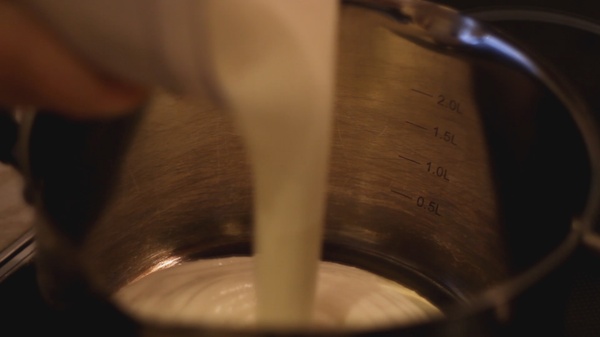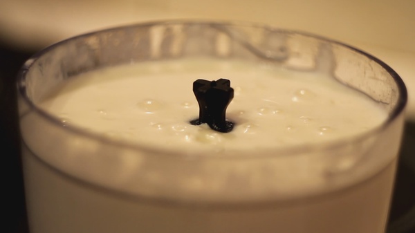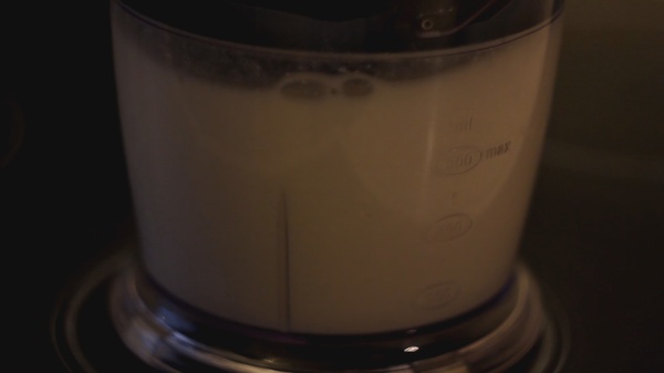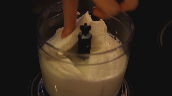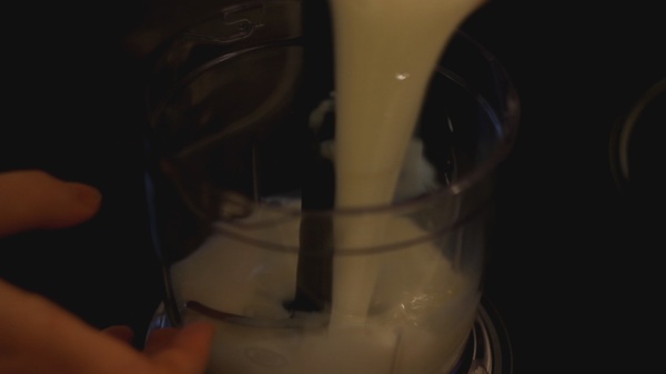 1. Для того, чтобы перемешать творог с молоком, воспользуемся блендером. Как только все положили в чашу, включим блендер и перемешаем.