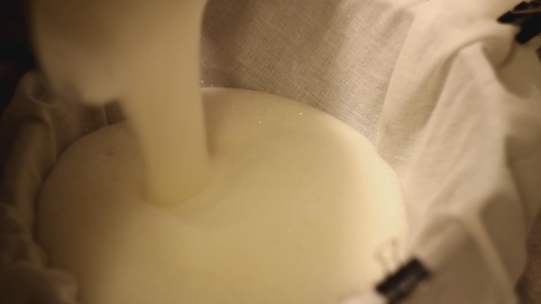 6. Теперь сольём все в дуршлаг, который мы накрыли предварительно марлей и закрепили прищепками. Благодаря марле, наш творог легче выжать от излишек жидкости.