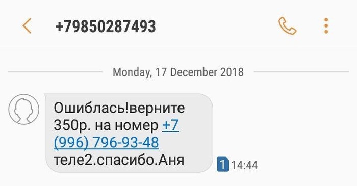 Намедни на номер плюхнулись сообщения стандартного развода.