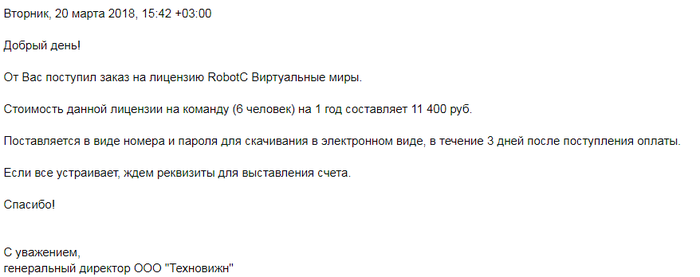 Прекрасно, полдела сделано, но мне всё ещё нужен пароль и ID для лицензии и я жду сообщение от компании. Спустя часов 16 на почту приходит письмо от генерального директора:
