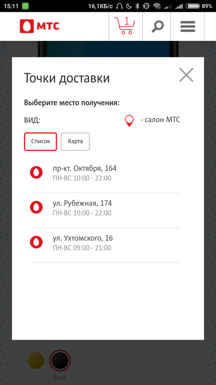 Ну бывает, - подумал я, и принялся искать телефон дальше. Удивился, что выбранный телефон в интернет-магазине МТС не убрали. Выбрал золотистый цвет телефона и точки, где я его могу забрать поменялись