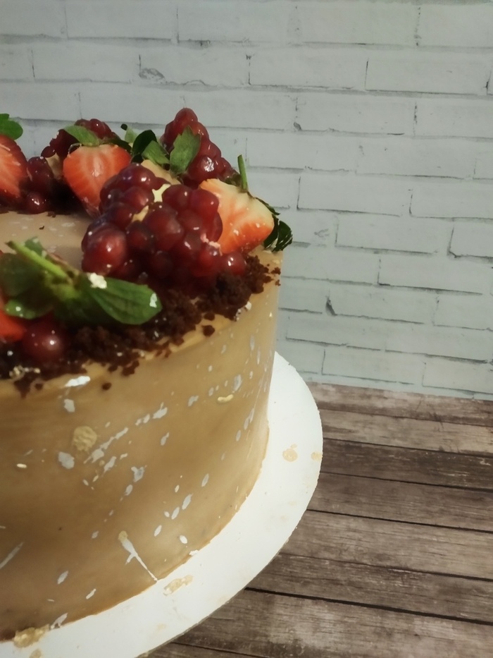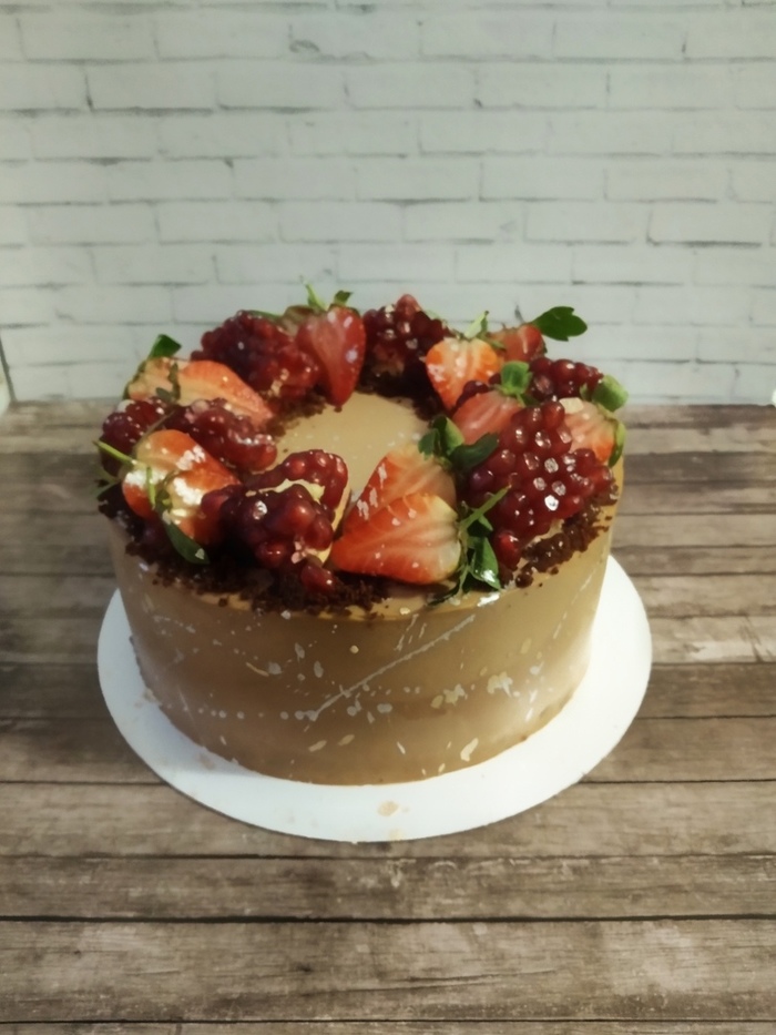 Шоколадно-карамельный торт с фундуком и нежным муссом.