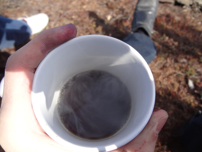 Чай и пальцы, испачканные собираемой и съедаемой по мере восхождения брусникой: