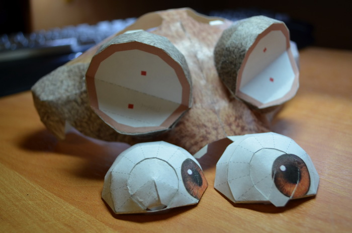 Тут собран люк. Немного возьни с приклеиванием прозрачной плёнки к бумаге. Люк свободно вставляется в корпус и на готовой модели его можно открыть.