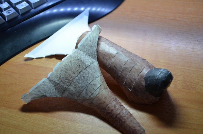 Переходим к крыльям. Внутри каждого крыла каркас, на который многослойно наносим обшивку. Для солнечных батарей выбрал глянцевую бумагу.