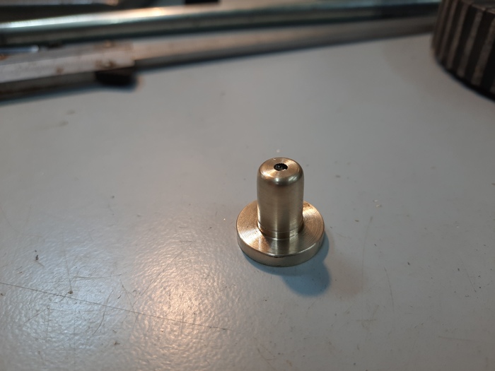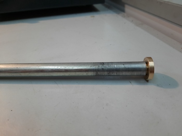 Долго я ломал голову какое бы сделать соединение между осью и латунной заглушкой. В голову лезли всякие резьбы, стопорные винты и прочая хрень. Но, к счастью, меня вовремя озарило и я принял единственное верное решение - только запрессовка, только хардкор.
