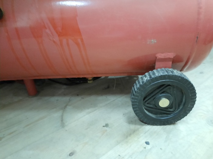 Из-за этого каждый раз при перемещении компрессора так, как это было задумано производителем, одно из его колес вылетало и он с грохотом падал на землю. А я очень не люблю, когда баллон под давлением падает на землю, это немного напрягает. Поэтому приходилось его переносить на руках. А переносить его на руках тоже как-то напрягает. В общем, пора было искать выход из этой непростой ситуации.