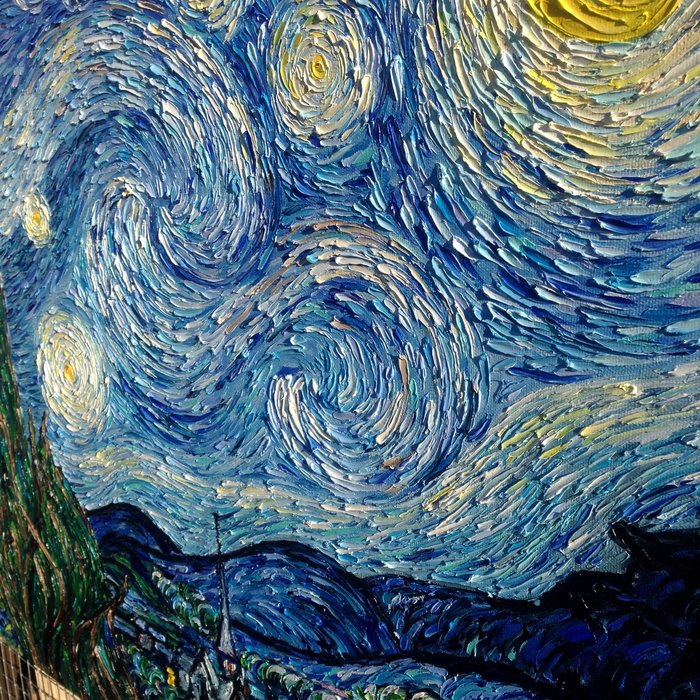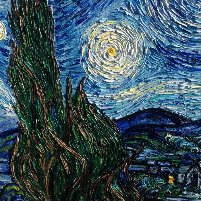 Здравствуйте люди добрые! Давно меня тут не было , извиняйте) С недавних пор полюбились мне некоторые картины Винсента Ван Гога , копирую их в своей технике мастихином. Картина маслом на холсте.Размер приближён к оригиналу 90х70см. Ежели есть вопросы какие пишите на почту ,быстрее отвечу lena_andreeva77@mail.ru … Всем мира и добра))