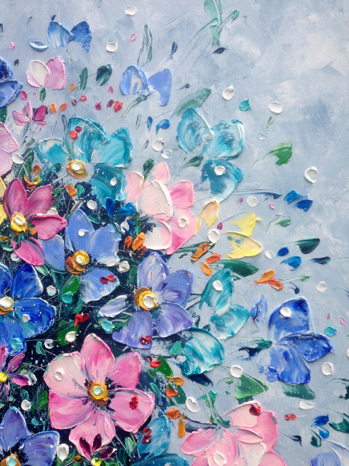 137 ElenaAndreeva Мастихиновая живопись) 8 лет назад новая работа, только что дописала...фрагмент) Авторская работа) Показать полностью 1 [моё] Картина Живопись Мастихин Арт Цветы
