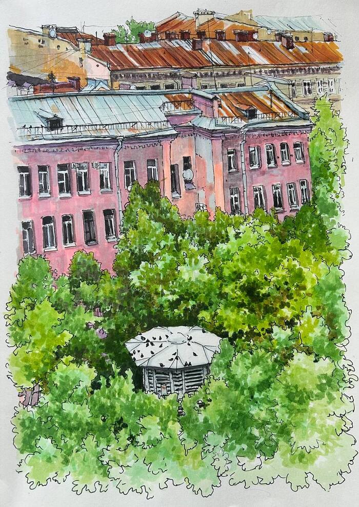 В палате 3 бесёнка 3-4-х лет, два с пневмонией, 3 мамки, 24 на 7 кашляющий и разговаривающий по телефону подросток. Уф! Было сложно! Одно спасение маркеры и виды из окна. Ночью, когда наконец все засыпали, сидя в коридоре накидывала скетчи. Отдушина :)