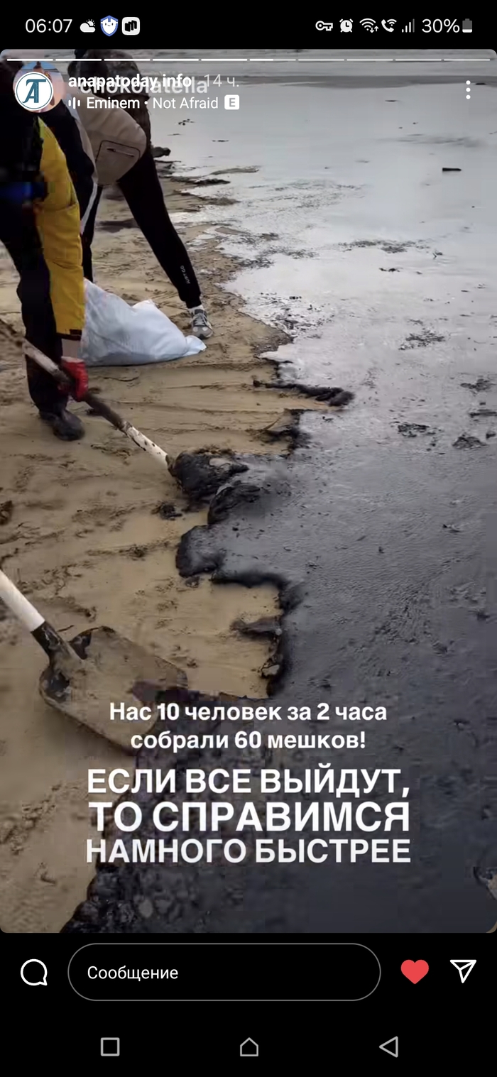 То, что сейчас происходит на пляжах Анапы - это настоящая, страшная беда! Мазут нужно собирать вручную лопатами в пакеты. Волонтёры стараются, но их очень мало! Техники не хватает, людей не хватает. Это наше дело! Это наше море, это наша любимая Анапа!
