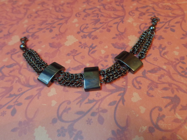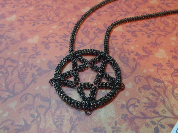 Подвеска пентаграмма с жесткой основой и браслет с гематитом, выполнены в технике кольчужного плетения, внутренний диаметр колец 4мм, толщина проволоки 0.6мм. Плетение мое любимое полное персидское(FullPersian).