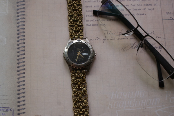 Браслет: плетение Тризантин, из колец толщиной 3.5мм, и толщиной 0.9.