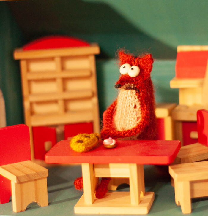 Миниатюра на гибком каркасе через всё тело. Связан из пушистого мохера. Комбинированный метод вязания. Наполнитель синтепон. Глаза из полимерной глины, леплю сама. Ростом до 10-12см.